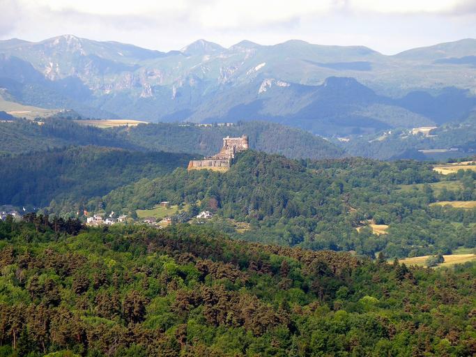 Keywords: france landscape sky clouds scenic mountains valley ravine forest trees woods vista castle landmark architecture nature outside summer spring country countryside