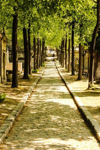 Keywords: france paris cemetery sunlight cimetiere du pere lachaise grave summer trees away path park avenue green warm