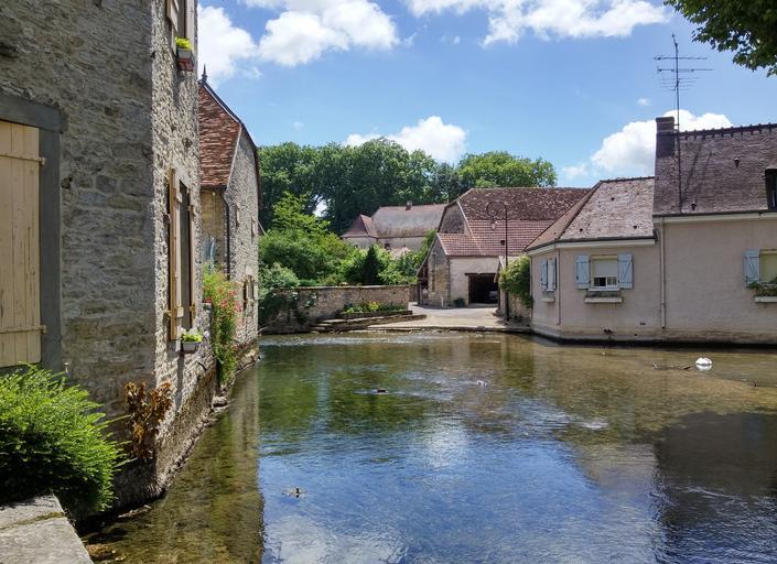 Keywords: france village middle ages idyll summer building french flowers river green facade homes