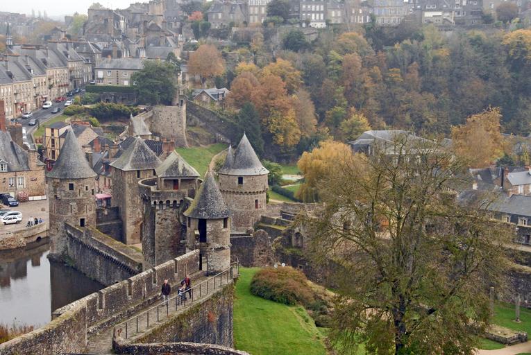 Keywords: france walled castle moat europe old britany medieval landmark tower tree grass stone fortification historic ancient building