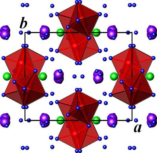 | Keywords: Francevillite ab.png en Crystal structure of francevillite Ba Pb UO<sub>2</sub> <sub>2</sub> VO<sub>4</sub> <sub>2</sub> 5H<sub>2</sub>O Pcan projected onto the a b plane Red vanadium purple uranium green barium lead blue oxygen The hydrogen atoms are not represented Data source K Mereiter 1986 Crystal structure refinement of two francevillites Ba Pb UO2 2 VO4 2·5H2 Neues Jahrbuch für Mineralogie Monatshefte 552-560 own Perditax 2011-04-01 Cc-zero Francevillite Crystal structures of vanadium compounds |
