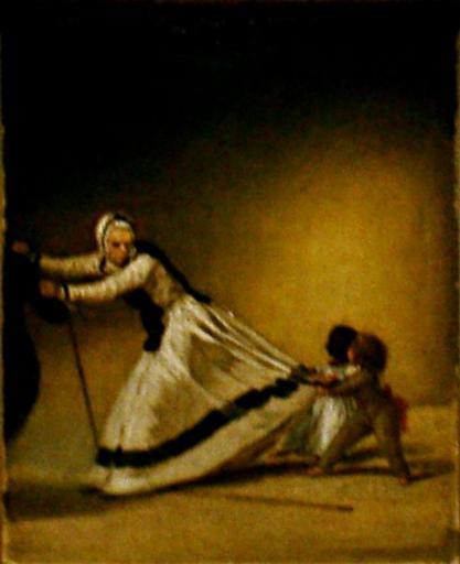 Keywords: Francisco de Goya y Lucientes 101 c.JPG Artwork en Scene from the palace of the Duchess of Alba La Beata with the children Luis Berganza and María de la Luz oil canvas en cm en Madrid en Arrango Collection As Goya's patron the duke of Alba and his wife had set up a studio for the painter at their Madrid palace Daily observation in close proximity to the life of the palace inhabitants resulted in this anecdotal cabinet painting the young son of the chamberlain and the dark-skinned girl adopted by the childless duchess are having fun with a servant The old woman known for her piety is seeking refuge with a priest whose presence is suggested by the figure dressed in black at the edge of the picture Image self taken at Goya exhibition in the Kunsthistorisches Museum in Vienna October 2005-January 2006 en around 1795 de c 1795 Creator Francisco de Goya y Lucientes PD-old-100 Other versions Image Francisco de Goya y Lucientes 101 JPG Paintings by Francisco de Goya Servants in art |