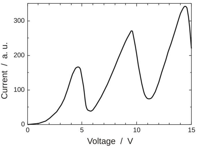 | Keywords: Franck-Hertz en.svg  Dependence of the anode current upon the voltage in the 1914 Franck-Hertz experiment The tube temperature was about 115 C <ref> cite journal J Franck Hertz G à ber Zusammenstöße zwischen Elektronen und Molekülen des Quecksilberdampfes und die Ionisierungsspannung desselben Verhandlungen der Deutschen Physikalischen Gesellschaft 1914 16 457 “467 A translation of this paper is given in cite book Boorse Henry A Motz Lloyd The World of the Atom 1 46 The Quantum Theory is Tested 766-778 Basic Books 1966 534667 </ref> Wikipedia contributor Ahellwig Redrawing of a figure from the original 1914 paper of Franck and Hertz Measured data points in the original graph have been removed See cite web Auszüge aus der Originalarbeit von Franck und Hertz 1914 http //leifi physik uni-muenchen de/web_ph12/originalarbeiten/franckhertz/original htm http //web archive org/web/20091130224501/http //leifi physik uni-muenchen de/web_ph12/originalarbeiten/franckhertz/original htm 2009-11-30 Franck also used this figure in his Nobel Lecture which is available in English translation at cite book Nobel Lectures Physics 1922-1941 Elsevier Transformation of Kinetic Energy of Free Electrons into Excitation Energy of Atoms by Impacts Franck James 1965 http //www nobelprize org/nobel_prizes/physics/laureates/1925/franck-lecture pdf 2006 reflist Experiment of Franck and Hertz |