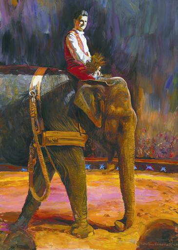 | Keywords: switzerland rapperswil circus-knie circusknie circus family elephant performance oilpainting artist-painter artistpainter hubertine-heijermans hubertineheijermans piste public circus-act circusact suisse 1999 on.canvas oncanvas national.circus.knie nationalcircusknie franco.knie francoknie der.schweiz derschweiz canton.san.gallen cantonsangallen headquarters.rapperswil headquartersrapperswil Rajah imitates the work in the forest. The elephant carries a saddle with a leather loop to pull heavy tree trunks, a perfect performance and an imitation of how work in the Indian forest was done. But today it has become doubtful that elephants are allowed to perform, as they became rare and are now protected. It is because they become very old that the law creates a problem for Franco Knie. And Rajah deserves to be able to go on and have audiences applaud. By the way, the equipment, saddle and loops are authentic. www.flickr.com/photos/tine-heijermans/27998143504/in/date... En français: Rajah imite le travail exécuté dans la forêt Indienne. Une selle particulière avec des boucles solides sert à tirer des troncs d'arbres et l'équipement est en effet authentique. Pourtant l'exploit d'éléphants est devenu aujourd'hui un tabou à cause de la protec-tion d'animaux d'origine sauvage. Mais des éléphants peuvent atteindre un grand age et ceci est la cause, que cette loi implique des éléphants depuis longtemps domestiqués. Rajah imitates the work in the forest. The elephant carries a saddle with a leather loop to pull heavy tree trunks, a perfect performance and an imitation of how work in the Indian forest was done. But today it has become doubtful that elephants are allowed to perform, as they became rare and are now protected. It is because they become very old that the law creates a problem for Franco Knie. And Rajah deserves to be able to go on and have audiences applaud. By the way, the equipment, saddle and loops are authentic. www.flickr.com/photos/tine-heijermans/27998143504/in/date... En français: Rajah imite le travail exécuté dans la forêt Indienne. Une selle particulière avec des boucles solides sert à tirer des troncs d'arbres et l'équipement est en effet authentique. Pourtant l'exploit d'éléphants est devenu aujourd'hui un tabou à cause de la protec-tion d'animaux d'origine sauvage. Mais des éléphants peuvent atteindre un grand age et ceci est la cause, que cette loi implique des éléphants depuis longtemps domestiqués. |