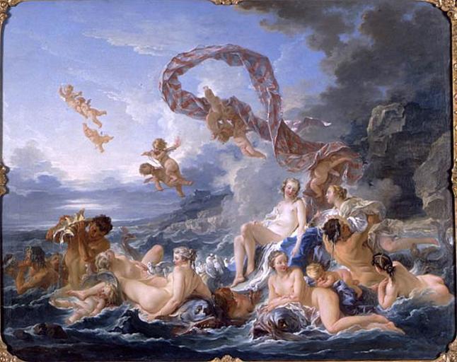 | Keywords: François Boucher, Venus triumf (1740) - 01.jpg Artwork Creator François Boucher The Triumph of Venus also known as The Birth of Venus Le Triomphe de Vénus dit aussi La Naissance de Vénus 1740 oil canvas cm 130 162 Institution Nationalmuseum Stockholm object history credit line ProvenanceEvent 1866 transfer Kungliga Museet Signed and dated bottom right f Boucher 1740 Signé et daté en bas à droite f Boucher 1740 Подписан и дати ован сп ава внизу f Boucher 1740 accession number 17773 NM 770 Nationalmuseum Stockholm 17773 NM 770 other versions PD-old-100 DEFAULTSORT 1740 Boucher Triumph of Venus The The Triumph of Venus François Boucher Paintings of nymphs Paintings of Venus Aphrodite with putti People with pigeons in art People with fish in art People with water in art Putti with torches Tritons 18th-century paintings of bathing females |