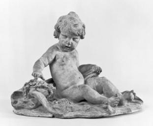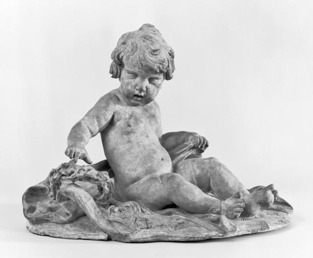 Keywords: François Du Quesnoy - The Infant Christ with Instruments of the Passion - Walters 27374.jpg The infant Christ grave and meditative reaches out to touch the crown of thorns a painful symbol of his future sacrifice beside which lie the whip with which he was tortured and bent nails drawn from the cross The cloth is be for wrapping an infant but is the shroud in which his dead body will be wrapped Christ's Passion was implicit in his birth Interpreting him as a tender chubby infant far too young for the understanding implied here gives the figure great poignancy This type of infant impossibly young for his or her actions was developed in Rome in the 1620s by the influential Flemish sculptor François Duquesnoy This sensitive example is by him or a close follower It may have been made as a model for a version in marble or bronze; however it was once gilded and was displayed as a finished work of art ca 1640 Baroque terracotta gilding cm 28 6 39 8 accession number 27 374 5171 Henry Walters Baltimore date and mode of acquisition unknown Walters Art Museum Henry Walters Acquired by Henry Walters Salute to Belgium place of origin Antwerp Walters Art Museum license Salute to Belgium Baroque sculpture in the Walters Art Museum François Duquesnoy Statues of Jesus |