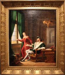| Keywords: François Ier montre à Marguerite de Navarre, sa sœur, les vers qu'il vient d'écrire sur une vitre avec son diamant - Fleury François Richard - MBA Lyon 2014.jpg  Artwork fr François Ier montre à Marguerite de Navarre sa sœur les vers qu'il vient d'écrire sur une vitre avec son diamant œuvre de 1804 par Fleury François Richard exposée au Musée des beaux arts de Lyon en 2014 1804 cm 78 66 Oil on wood panel Institution Musée Napoléon Thurgovie Xavier Caré PD-old-100 Musée des beaux-arts de Lyon - Supported by Wikimedia France Uploaded with UploadWizard Images by JeanBono - MBALyon 2014 François Ier montre à Marguerite de Navarre sa sœur les vers qu'il vient d'écrire sur une vitre avec son diamant by Fleury François Richard L'invention du passé Histoires de cœur et d'épée en Europe 1802-1850 |