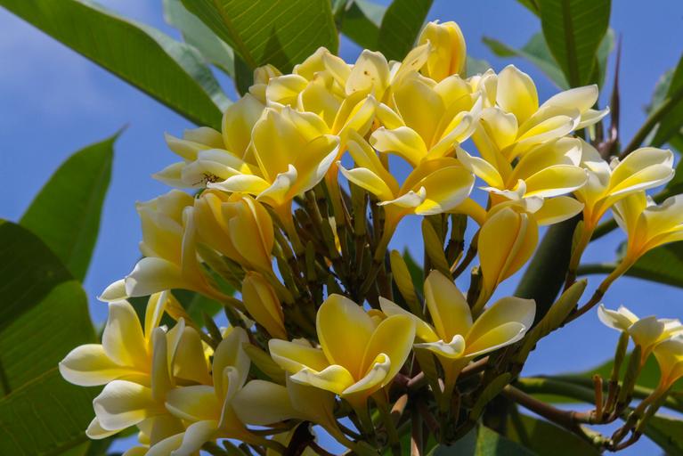 Keywords: frangipani pomelia yellow plumeria flowers nature yellow colors