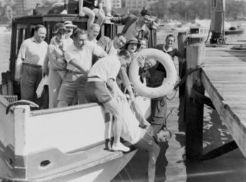 | Keywords: wharf lifesaver lauch ferry sydney harbour sydneyharbour actor singer blackandwhite monochrome black and white Note: Frank Leighton was co-starring in the musical "A Southern Maid" opposite Gladys Moncrieff (known to all Australians as "Our Glad"). At the time the J.C. Williamson company controlled most of the professional theatre in Australia and New Zealand, owning most of the theatres in the major cities. Their company was the largest theatrical company in the capitalist world, despite the two countries having a population of only around ten million combined. Stars were imported, mainly from the UK and the USA. Format: Film negative From the collections of the Mitchell Library, State Library of New South Wales www.sl.nsw.gov.au Information about photographic collections of the State Library of New South Wales: acms.sl.nsw.gov.au/search/SimpleSearch.aspx Persistent url: acms.sl.nsw.gov.au/item/itemDetailPaged.aspx?itemID=395116 Note: Frank Leighton was co-starring in the musical "A Southern Maid" opposite Gladys Moncrieff (known to all Australians as "Our Glad"). At the time the J.C. Williamson company controlled most of the professional theatre in Australia and New Zealand, owning most of the theatres in the major cities. Their company was the largest theatrical company in the capitalist world, despite the two countries having a population of only around ten million combined. Stars were imported, mainly from the UK and the USA. Format: Film negative From the collections of the Mitchell Library, State Library of New South Wales www.sl.nsw.gov.au Information about photographic collections of the State Library of New South Wales: acms.sl.nsw.gov.au/search/SimpleSearch.aspx Persistent url: acms.sl.nsw.gov.au/item/itemDetailPaged.aspx?itemID=395116 |