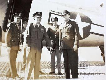| Keywords: frank seifert frankseifert aerial refueling aerialrefueling 20th air force 20thairforce world war one worldwarone c-47 c47 dc-3 dc3 aviation aircraft airplane douglas douglas aircraft company douglasaircraftcompany dac douglas c-47 skytrain douglasc47skytrain douglas c-47 douglasc47 douglas skytrain douglasskytrain douglas dc-3 douglasdc3 douglas dakota douglasdakota dakota marston mat marstonmat pierced-steel planking piercedsteelplanking psp Frank Seifert entered aviation as an Army Cadet in WWI and became a flying instructor. In 1923 he was awarded the DFC and selected for the Air Force Hall of Fame for his part in the first air-to-air refueling flight. He resigned from the Army in 1925 and entered the business world. He was recalled to active duty in 1942. He served with the 20th Air Force in the Pacific. Repository: San Diego Air and Space Museum Archive Frank Seifert entered aviation as an Army Cadet in WWI and became a flying instructor. In 1923 he was awarded the DFC and selected for the Air Force Hall of Fame for his part in the first air-to-air refueling flight. He resigned from the Army in 1925 and entered the business world. He was recalled to active duty in 1942. He served with the 20th Air Force in the Pacific. Repository: San Diego Air and Space Museum Archive |