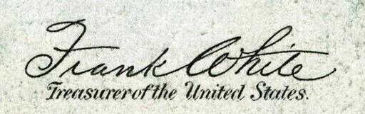 Keywords: Frank White (Engraved Signature).jpg en Engraved signature on U S Bank Notes “ paper currency 2012-12-26 www nationalcurrencyfoundation org Bureau of Engraving and Printing Smithsonian Institution PD-USGov Engravings Signatures of U S Treasurers on United States Banknotes White Frank Smithsonian Institution Currency National Numismatic Collection Banknote signatures scanned by User Godot13 |
