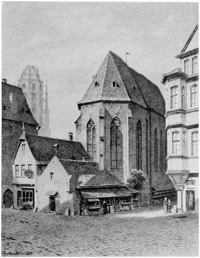 | Keywords: Frankfurt Am Main-Carl Theodor Reiffenstein-FFMDFSIBUS-Heft 01-1894-015-Tafel 02-Crop.jpg Artwork Creator Carl Theodor Reiffenstein en 2 The St John's Church at the corner of Schnurgasse Line Lane and Fahrgasse Drive Lane en 2 The St John's Church with fittings at the corner of the Schnurgasse Line Lane and Fahrgasse Drive Lane facing the yet standing Bay House žzum Würzburger Eck Würzburg Corner in the Middle Ages žKircheneck Church Corner Both the church and the commandery house and yard situated behind it were property of the Order of Saint John who settled here at the end of the 13th century After being used as a salesroom for years the church was torn down in 1872 de 2 Die Johanniterkirche mit den Anbauten an der Ecke der Schnurgasse und Fahrgasse gegenüber dem noch stehenden Erkerhause žzum Würzburger Eck im Mittelalter žKircheneck Sie war mit dem hinten liegenden Commendehaus und -hof Eigentum des Johanniterordens der sich hier gegen Ende des 13 ten Jahrhunderts niederließ Nachdem die Kirche Jahre lang als Geschäftslokal gedient hatte wurde sie 1872 niedergelegt before 1845 / 1871 / 1894 technique collotype watercolour size cm 12 65 9 8 cm 12 7 10 Private collection Mylius Frankfurt am Main object history credit line en Issue 1/6 de Heft 1/6 accession number Carl Theodor Reiffenstein Frankfurt am Main die freie Stadt in Bauwerken und Straßenbildern Carl Jügels Verlag M Abendroth Frankfurt am Main 1894 “99 PD-old-100 <gallery>File Frankfurt Am Main-Carl Theodor Reiffenstein-FFMDFSIBUS-Heft 01-1894-015-Tafel 02 jpg</gallery> Crops from Frankfurt am Main die freie Stadt in Bauwerken und Straßenbildern Fahrgasse Schnurgasse Johanniterkirche Frankfurt Frankfurt am Main in the 19th century |