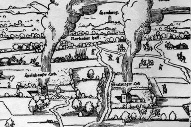 | Keywords: Frankfurt Am Main-Kuehhornshof-Faber-1552.jpg en Frankfurt on the Main Detail from the siege plan of 1552 with the north-eastern bounds of Frankfurt In the foreground the burning Holzhausenschlösschen Holzhausen Manor House labeled as Holtzhauser Oed and the Stalburger Oed In the background the suburban farm house Kühhornshof formerly called Rorbacher Hoff as well as ” in the background ” a predecessor of the small town Bad Homburg vor der Höhe de Frankfurt am Main Detail aus dem Belagerungsplan von 1552 mit der nordöstlichen Frankfurter Gemarkung Im Vordergrund die brennenden Holzhausenschlösschen Holzhauser Oed und die Stalburger Oed im Hintergrund der Kühhornshof ehemals Rorbacher Hoff sowie “ im Bildhintergrund angedeutet “ ein Vorläufer der heutigen Stadt Bad Homburg vor der Höhe James Westfall Thompson The Frankfort Book Fair The Francofordiense Emporium of Henri Estienne The Caxton Club Chicago 1911 Creator Conrad Faber von Creuznach 1552 PD-old-100 Fabers Belagerungsplan Holzhausenschlösschen Kuehhornshof Stalburger Oede Bad Homburg vor der Höhe Oeder Weg ImageNote 1 441 306 150 86 1500 1000 2 žRorbacher Hoff der spätere Kühhornshof ImageNoteEnd 1 ImageNote 2 233 653 218 124 1500 1000 2 žHoltzhauser Oed heute Standort des Holzhausenschlösschen ImageNoteEnd 2 ImageNote 3 913 722 204 90 1500 1000 2 žStalburger Oed heute Standort des Stalburg Theaters ImageNoteEnd 3 ImageNote 4 744 537 154 462 1500 1000 2 Oeder Weg bis in die Gegenwart erhaltener Straßenname ImageNoteEnd 4 ImageNote 5 729 84 246 131 1500 1000 2 Heute Bad Homburg vor der Höhe ImageNoteEnd 5 ImageNote 6 788 214 188 68 1500 1000 2 Mutmaßlich das Dorf Eckenheim 1910 eingemeindet als Frankfurt-Eckenheim ImageNoteEnd 6 ImageNote 7 593 281 906 64 1500 1000 2 Frankfurter Landwehr ImageNoteEnd 7 ImageNote 8 2 2 377 156 1500 1000 2 Mittelgebirgszug Taunus ImageNoteEnd 8 |