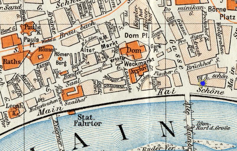 | Keywords: Frankfurt Am Main-Schopenhauerhaus-Position-Meyers.jpg en Frankfurt on the Main Position of the Schopenhauerhaus Schopenhauer House as seen on a map of the old town de Frankfurt am Main Lage des Schopenhauerhauses auf einer Karte der Altstadt Bibliographisches Institut Hrsg Meyers Großes Konversations-Lexikon Ein Nachschlagewerk des allgemeinen Wissens Sechste gänzlich neubearbeitete und vermehrte Auflage Bibliographisches Institut Leipzig und Wien 1902 “10 Bibliographisches Institut 1904 PD-old Schopenhauerhaus Maps from Meyers Konversationslexikon |