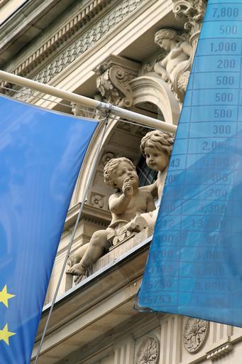 Keywords: frankfurt most main town center center frankfurt am main germany old town stock exchange angel flag europe european flags euro crisis