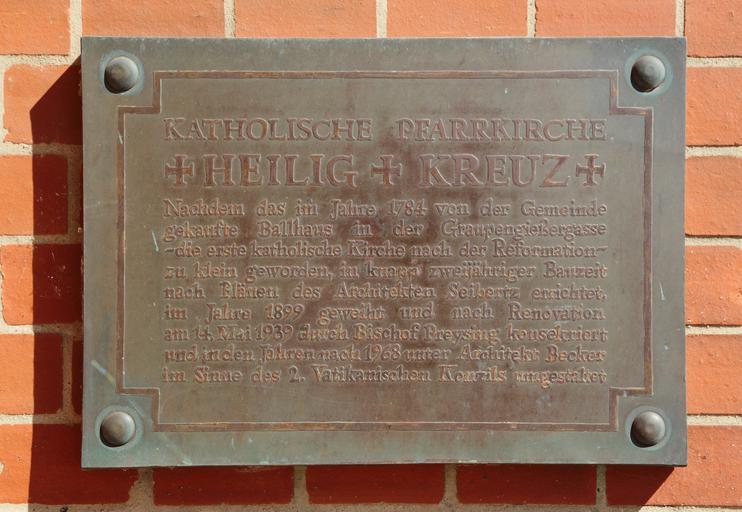 | Keywords: Frankfurt Oder Heilig Kreuz 04.JPG en Information plaque at the portal of the Roman Catholic Holy Cross Parish Church Pfarrkirche Heilig Kreuz in Frankfurt Oder Brandenburg Germany de Informationstafel am Portal der römisch-katholischen Pfarrkirche Heilig Kreuz in Frankfurt Oder Brandenburg Deutschland own J -H Janßen 2015-06-05 52 20 611 0 N 14 32 7821 0 E alt 38 7_source exif_heading FoP-Germany Katholische Kirche Zum Heiligen Kreuz Frankfurt Oder Plaques in Frankfurt Oder 2015 in Frankfurt Oder 20150605 Frankfurt Oder June 2015 in Germany 20150605 Frankfurt Oder Photographs taken on 2015-06-05 Frankfurt Oder Bilder von J -H Janßen Taken with Canon EOS 6D and Canon EF 24-105mm F4L IS USM Cc-zero |