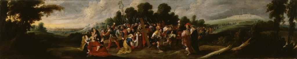 | Keywords: Frans Francken II - Christ Carrying the Cross - Walters 372624.jpg Walters Art Museum artwork Q18748502 Creator Frans Francken II The procession engulfing Christ carrying his cross to Calvary winds out of the city at the left into the foreground and back to Calvary at the far right The oblong shape suggests that the canvas was painted for a specific place perhaps a sacristy Francken included a similar work in some of his paintings of collections between 1620 1629 Baroque Oil on canvas cm 36 8 176 8 accession number 37 2624 23754 Mrs Marcelle J von Mayer-Denues Columbia Maryland date and mode of acquisition unknown Walters Art Museum Henry Walters Bequest of Mrs Marcelle J von Mayer-Denues 1985 place of origin Antwerp Belgium Walters Art Museum license 2D Baroque paintings in the Walters Art Museum Religious paintings by Frans Francken II 1620 Christ Carrying The Cross Media contributed by the Walters Art Museum needs category review 1620s oil on canvas paintings in the United States Paintings of the procession to Calvary 17th-century religious paintings in the United States 17th-century paintings of the Passion of Christ Baroque paintings in the United States Baroque paintings of the New Testament |