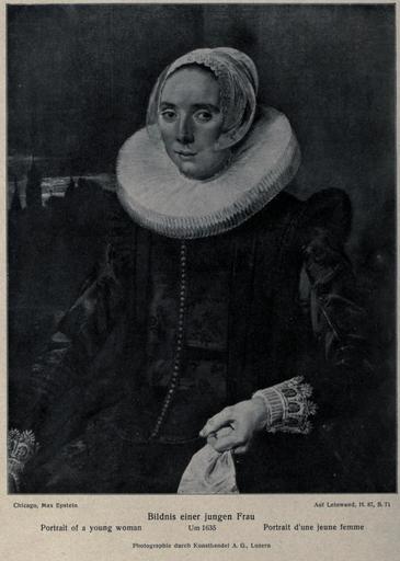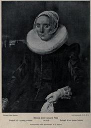 Keywords: Frans Hals - portrait of a lady in a chair -KdK128.jpg en Klassiker der Kunst in Gesamtausgaben Achtundzwansigster band <br/> Frans Hals Des Meisters Gemälde in 322 Abbildungen 1923 Wilhelm Reinhold Valentiner <br> Portrait of a young woman ca 1635 cat nr 128 shown as printed in the catalog before restauration in 1969 removed the landscape on the left and restored the back of the chair underneath 1635 http //archive org/stream/franshalsdesmeis00valeuoft page/128/mode/1up oil on panel 87 cm x 71 cm Creator Frans Hals other versions <gallery>File Frans Hals - portrait of a lady in diadem cap and cartwheel ruff - Art Institute of Chicago jpg After restauration in 1969</gallery> PD-Art-100 Uploaded with UploadWizard Female portrait paintings by Frans Hals |