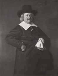 Keywords: Frans Hals - portrait of a man holding gloves.JPG artwork Creator Jan Hals 1648 Oil on canvas cm 126 5 102 Art Gallery of Ontario accession number inv nr 2523 141754 http //declaration net/project/frans-hals---portrait-of-a-man-holding-gloves declaration net en This painting and its companion a portrait of a man Art Gallery of Ontario Toronto were first recorded in 1788 in the state dressing room at Stowe House as portraits of a Burgomaster and his wife by Van Horst The paintings retained their attribution to Van Horst in guidebooks to the collection through 1832; in a guidebook edition of 1838 they were first attributed to Frans Hals See Seymour Slive Frans Hals London Phaidon 1974 vol 3 pp 148-149 cat D59 and pp 155-156 cat no D77 Sold at auction Sir Cecil Miles E A London 13-5-1899; by 1937 Knoedler New York; by unknown date collection of Robert Young Eaton of Eaton's department store who served as president of the Art Gallery of Ontario from 1924 to 1941 and donated this painting to the collection Photo of Gerrit David Gratama's Frans Hals 1938-1946 nr 99; Seymour Slive 1970-1974 cat nr D59 as by Jan Hals ; Exhibition Frans Hals Museum 1937 cat nr 97 other versions <gallery> Jan Hals - portrait of a seated woman holding a book jpg Pendant portrait </gallery> PD-old-100 DEFAULTSORT Hals Jan; Portrait of a standing man holding gloves-portrait of a seated woman holding a book1 Jan Hals Paintings in the Art Gallery of Ontario Black and white reproductions of portrait paintings in color Collars in art Right hand on hip in portrait paintings Male portraits holding glove Hals Jan; Portrait of a standing man holding gloves Pendant portrait paintings of wedded couples Portrait paintings of men wearing black hats Hals Jan; Portrait of a standing man holding gloves Three-quarter view portrait paintings of men Hals Jan; Portrait of a standing man holding gloves 1648 oil on canvas paintings Portrait; Hals Jan; Portrait of a standing man holding gloves 1648 portrait paintings Male; Hals Jan; Portrait of a standing man holding gloves 1640s paintings of men looking at viewer 17th-century oil portraits of standing men at three-quarter length 1648 17th-century portrait paintings in Canada 1648 17th-century portrait paintings of unidentified men 1648c |