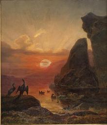 Keywords: Frants Bøe - Sjøfugler i midnattsol, 1876.jpg Artwork creator Frants Bøe 1876 Oil on canvas 55x48 object history exhibition history credit line accession number place of creation Bergen http //gwpa no/eng/items/22593 PD-old-100 Paintings by Frants Bøe Uploaded with UploadWizard Paintings of the midnight sun Cormorants in art Paintings of birds 1876 paintings in Norway 1876 paintings from Norway Lofoten in art 19th-century landscape paintings of Norway 19th-century oil on canvas paintings of landscapes in Norway |