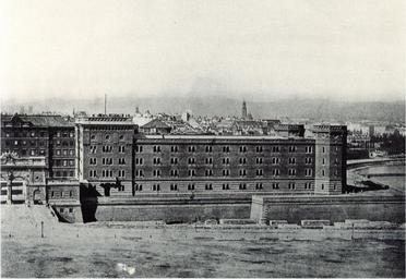 | Keywords: Franz-josef-kaserne-rechts-1858.jpg Die ehemalige Franz-Joseph-Kaserne in Wien; Rechter Flügel mit dem rechten Teil des Haupttores links ganz rechts ein Stück des Donaukanals; der Abriss der Stadtmauer hat hier noch nicht begonnen The former Franz-Joseph-Kaserne Francis Joseph Barracks in Vienna; Photograph shows the right wing and the right part of the main gate left ; at the right edge part of the Danube Canal; the demolition of the city walls had not yet started Helfried Seemann Christian Lunzer Hrsg Wien Innere Stadt 1850-1860 Stadtmauern Tore Basteien in zeitgenössischen Photographien ALBUM Verlag für Photografie Wien 1995 ISBN 3 85164 039 X 1858 unknown; originally published by the k k Staatsdruckerei original version is about 1/3 higher the part cut off shows only empty sky PD-old Military buildings in Vienna Former buildings and structures of Vienna Barracks in Austria Austro-Hungarian Army barracks in Vienna Franz Josef Kaserne 1858 in Vienna |