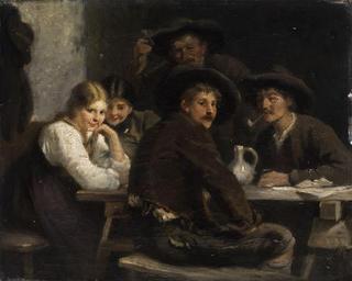 Keywords: Franz von Defregger Zur Gesundheit Studie.jpg Zur Gesundheit oil on canvas 25 8 x 31 8 cm no signature http //www hampel-auctions com/ Hampel Auctions by 1921 Creator Franz von Defregger Images from Hampel Auctions Franz von Defregger Paintings of tavern interiors PD-old-70-1923
