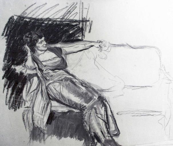 Keywords: Frau in Pose.jpg de Frau in Pose before 1926 own by User ReneReinicke 2010-09-24 Creator René Reinicke Public Domain Photo also licensed cc-by-sa-3 0 PD-old-auto 1926 René Reinicke People on couches in art