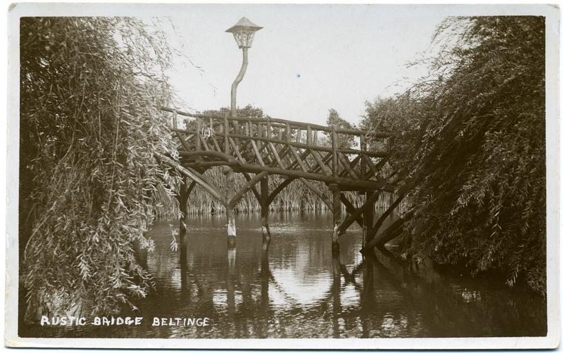 | Keywords: Fred C Palmer 001.jpg  Postcard photo of rustic bridge at Beltinge near Herne Bay Kent England where Mickleburgh Hill now meets Reculver Road The bridge was demolished and the pond drained around 1960 and the area is now as of 2010 covered by a 1960s housing estate The pond is now in the grounds of a house called Talmead and screened from the road by a high wall The photographer was Fred C Palmer of Tower Studio Herne Bay Kent who is believed to have died 1936-1939 NB The bridge is sometimes wrongly referred to as Blacksole Bridge although Blacksole Bridge is the nearby railway bridge Border The remaining border of this image is important for researchers of this photographer Some photographers trimmed their images more than others and Palmer has a reputation for producing smaller postcards than other early 20th century UK photographers He took his own photos developed them in-house onto postcard-backed photographic paper and trimmed them himself It is worth adding that during hand-developing the border is actively masked with equipment which both crops the picture and causes the white frame or border to appear on the paper This frame is part of the design and is one of the reasons why the quality of Palmer's work is so interesting and why there is an article and category for him on English Wiki Researchers need to see exactly where the edge of the postcard is Thank you for taking the time to read this Scan of original postcard in my possession 1910-1916 Fred C Palmer died 1936-1939 out of copyright It has been confirmed that File Talmead Pond Geograph jpg is the same site as of June 2010 <br/> See also File Rustic bridge at Beltinge 1913 jpg same site in 1913 PD-old-70-1923 Fred C Palmer of Herne Bay Beltinge Bridges in Kent |