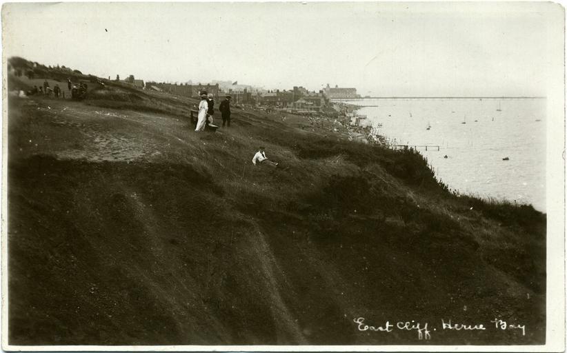 | Keywords: Fred C Palmer East Cliff 001.jpg Postcard photo of East Cliff at Herne Bay Kent England The postcard is unused but it is dated on the grounds that the Grand Pier Pavilion in the background was built in 1910 and the Kings Hall has not yet had its 1913 rebuild The photographer was Fred C Palmer of Tower Studio Herne Bay Kent who is believed to have died 1936-1939 Points of interest Among the posed group of people in the centre foreground the lad on the grass is smiling cheekily as if perhaps he has done this before Could he be Palmer's son Leslie Reginald born 1896 The large group in the top left distance might be a Sunday works or church outing; these outings would arrive by train or charabanc The sea is full of boats; some perhaps bringing fish or seafood for the caterers There are very few inshore boats at Herne Bay today The Pavilion with bandstand on top can be seen in the distance Notes for editors Contrast Please note that this century-old photo has darkened with age It is likely to be counter-productive to adjust the contrast because detail would be lost in the light or pale areas If you wish to upload a contrast-adjusted version please consider uploading it as a separate image with a link to this image Thank you for your consideration Border The border of this image is important for researchers of this photographer Some photographers trimmed their images more than others and Palmer has a reputation for producing smaller postcards than other early 20th century UK photographers He took his own photos developed them in-house onto postcard-backed photographic paper and trimmed them himself It is worth adding that during hand-developing the border is actively masked with equipment which both crops the picture and causes the white frame or border to appear on the paper This frame is part of the design and is one of the reasons why the quality of Palmer's work is so interesting and why there is an article and category for him on English Wiki Researchers need to see exactly where the edge of the postcard is If you wish to upload a cropped image please consider uploading it as a separate image with a link to this one Thank you for taking the time to read this Scan of original postcard in my possession 1910-1913 Fred C Palmer died 1936-1939 out of copyright PD-old-70-1923 Herne Bay Kent Fred C Palmer of Herne Bay Herne Bay Kings Hall 1904-1950 |