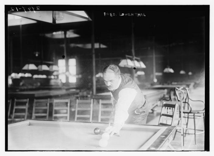 Keywords: Fred Lowenthal (LOC).jpg Bain News Service publisher Fred Lowenthal between ca 1910 and ca 1915 1 negative glass ; 5 x 7 in or smaller Notes Title from unverified data provided by the Bain News Service on the negatives or caption cards Forms part of George Grantham Bain Collection Library of Congress Format Glass negatives Rights Info No known restrictions on publication Repository Library of Congress Prints and Photographs Division Washington D C 20540 USA http //hdl loc gov/loc pnp/pp print hdl loc gov/loc pnp/pp print General information about the Bain Collection is available at http //hdl loc gov/loc pnp/pp ggbain hdl loc gov/loc pnp/pp ggbain Persistent URL http //hdl loc gov/loc pnp/ggbain 15109 hdl loc gov/loc pnp/ggbain 15109 Call Number LC-B2- 2947-12 http //www flickr com/photos/library_of_congress/4668751565/ Fred Lowenthal LOC LOC-image ggbain 15109 http //www flickr com/people/8623220 N02 The Library of Congress http //www loc gov/rr/print/195_copr html noknown The Library of Congress Flickr Commons PD-Bain The Library of Congress http //flickr com/photos/8623220 N02/4668751565 2012-10-11 18 50 35 pd Sportspeople from the United States Pool players |