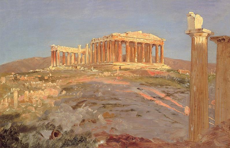 Keywords: frederic church painting art artistic artistry oil on canvas landscape sky clouds nature outside country countryside trees scenic parthenon ruins historical landmark architecture