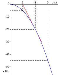 Keywords: Free fall.svg The y-position as a function of time for g 10 m/s2 The tangent red shows the velocity after 2 seconds Own 2007-06-27 Pieter Kuiper ValidSVG Parabolic trajectories Kinematic diagrams depicting the free fall Created with Text Editor |