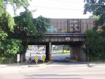 | Keywords: Freight Train Crossing Scarlett Road.jpg en A freight train speeds across the railway bridge at the foot of Scarlett Road photographed from Dundas Street West in Toronto Ontario Canada Own GTD Aquitaine 2008-08-23 Railway bridges in Toronto |