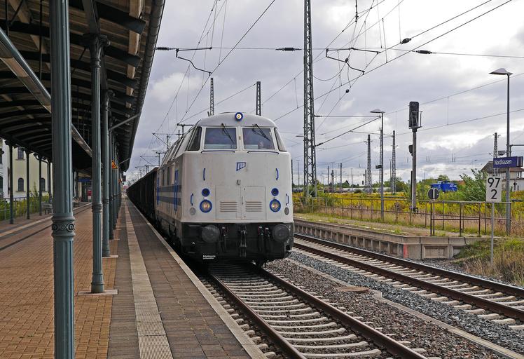 Keywords: freight train private railway station transit platform freight transport rail traffic railway station nordhausen diesel locomotive br 228 home platform metal construction signal signal box railway transport central station transit