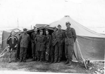 Keywords: andre verdenskrig andreverdenskrig frigjøring vårslipp 2015 vårslipp2015 kautokeino / guovdageainnu kautokeinoguovdageainnu finnmark norge Så kom heldigvis en kvinne til etter en uke, jordmor og sykepleierske Aagot Bjerkebæk, og distriktslæge Petter Albert Heggeløv. Vi skulde arbeide sammen. Her er vårt operasjonstelt. Fra venster: Samen Nils, Hansen, dr. Heggeløv, meg, S. Aagot, Stangebye, dr. Tornøe og fenrik Dypvik. Fotografiet kommer fra et album gitt til Riksarkivet av sykepleier Marie Lysnes. Våren 1945 deltok hun i opprettelsen av et feltsykehus i Finnmark. Lysnes dokumenterte oppholdet i Finnmark gjennom tekst og bilder. Albumet er en del av privatarkivet etter Marie Lysnes. Arkivreferanse: PA-0873: Lysnes, Marie, Riksarkivet. Så kom heldigvis en kvinne til etter en uke, jordmor og sykepleierske Aagot Bjerkebæk, og distriktslæge Petter Albert Heggeløv. Vi skulde arbeide sammen. Her er vårt operasjonstelt. Fra venster: Samen Nils, Hansen, dr. Heggeløv, meg, S. Aagot, Stangebye, dr. Tornøe og fenrik Dypvik. Fotografiet kommer fra et album gitt til Riksarkivet av sykepleier Marie Lysnes. Våren 1945 deltok hun i opprettelsen av et feltsykehus i Finnmark. Lysnes dokumenterte oppholdet i Finnmark gjennom tekst og bilder. Albumet er en del av privatarkivet etter Marie Lysnes. Arkivreferanse: PA-0873: Lysnes, Marie, Riksarkivet. |