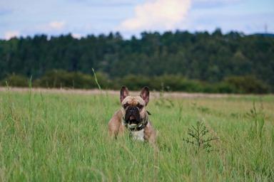 Keywords: french bulldog frenchie bulldogs bully dog buddy pet out attention green animal outdoor leisure nature field meadow beige fawn white blaze sweet cute play more trees gassi bulldog male grass high grass purebred dog fur light brown bat ears