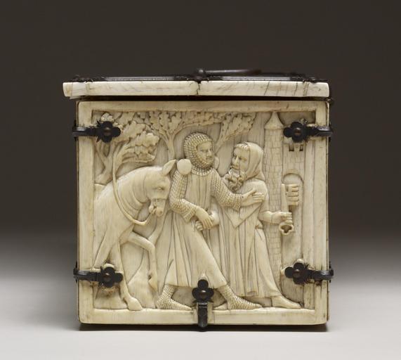| Keywords: French - Casket with Scenes of Romances - Walters 71264 - Right.jpg This splendid casket is carved with scenes from romances and allegorical literature representing the courtly ideals of love and heroism In the center of the lid knights joust as ladies watch from the balcony; to the left knights lay siege to the Castle of Love the subject of an allegorical battle The remaining scenes on the casket are drawn from well-known stories about Aristotle and Phyllis Tristan and Iseult and tales of the gallant heroic deeds of Gawain Galahad and Lancelot The box may originally have been a courtship gift between 1330 1350 Medieval ivory with modern iron mounts cm 11 8 25 2 12 9 accession number 71 264 5780 Rev John Bowle Wiltshire prior to 1757 Gustavus Brander Christchurch Hampshire prior to 1787 mode of acquisition unknown Francis Douce London prior to 1824 mode of acquisition unknown Sir Samuel Rush Meyrick Goodrich Court Herefordshire prior to 1836 mode of acquisition unknown Lt Col Augustis Meyrick 1848 by inheritance Frédéric Spitzer Paris by purchase Sale Paul Chevallier and Charles Mannheim April 17 1893 no 114 Oscar Hainauer Berlin prior to 1897 mode of acquisition unknown Hector Economos Paris prior to 1913 mode of acquisition unknown Henri Daguerre Paris after 1913 mode of acquisition unknown Arnold Seligmann Rey and Co Paris date and mode of acquisition unknown Henry Walters city Baltimore Walters Art Museum Henry Walters Acquired by Henry Walters 1923 Ivory The Sumptuous Art The Walters Art Gallery Baltimore 1983-1984 The Taste of Maryland Art Collecting in Maryland 1800-1934 The Walters Art Gallery Baltimore 1984 Plants and Flowers in Medieval Manuscripts The Walters Art Gallery Baltimore 1991 Medieval Games of Love and War The Walters Art Gallery Baltimore 1995-1996 Images in Ivory Precious Objects of the Gothic Age The Detroit Institute of Arts Detroit; The Walters Art Gallery Baltimore 1997 Vive la France French Treasures from the Middle Ages to Monet The Walters Art Gallery Baltimore 1999-2000 The Book of Kings Art War and the Morgan Library's Medieval Picture Bible The Walters Art Museum Baltimore; Academy of the Arts Easton Easton; Princeton University Art Museum Princeton; The Mitchell Gallery Annapolis; Williams College Museum of Art Williamstown 2002 Romance of the Rose Visions of Love in Illuminated Medieval Manuscripts The Walters Art Museum Baltimore 2009 place of origin Paris France Walters Art Museum license Casket with Scenes of Romances - Walters 71264 Art of France in the Walters Art Museum Media contributed by the Walters Art Museum needs category review Vive la France French Treasures from the Middle Ages to Monet |