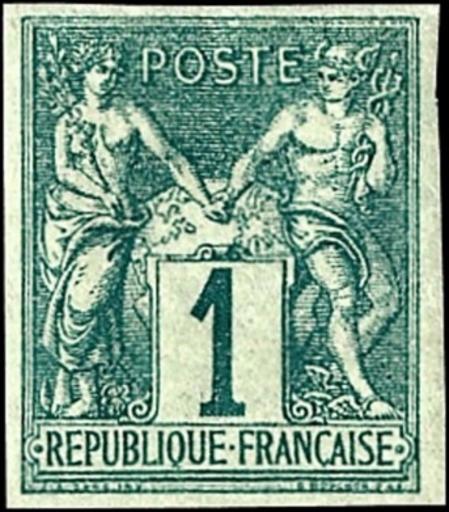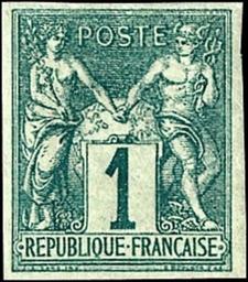 | Keywords: French Colonies imperf 1c Peace & Commerce stamp.jpg  Peace and Commerce Type Sage stamp Scott 24 ru Беззубцовая почтовая ма ка ф анцузских колоний тип  и и то говля 1 сантим зеленая на зеленоватой бумаге Скотт  24 1877 1880 http //www linns com/en/insights/stamp-collecting-basics/2005/july/french-colonialism-left-stamp-collecting-legacy html linns com Stamp by designer Jules-Auguste Sage engraved by Louis-Eugène Mouchon other versions PD-old-70-1923 Definitive stamps for French colonies Type Sage |