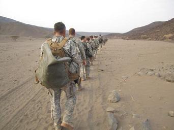 Keywords: French, Djiboutian, US service members survive the desert 110921-N-MJ000-264.jpg en Service members from the French Djiboutian and United States militaries walk across the desert in Djibouti during a desert combat training course Sept 21 The service members navigated across 50 miles of desert during the 10-day course Forty members of the Combined Joint Task Force - Horn of Africa and Camp Lemonnier Djibouti participated in the training to learn how to survive in desert conditions <br>Unit Combined Joint Task Force - Horn of Africa 2011-09-21 U S Navy photo by Lieutenant Mark Jackson https //www dvidshub net/image/471439/french-djiboutian-us-service-members-survive-desert 110921-N-MJ000-264 2011-10-10 09 31 CAMP LEMONNIER DJ PD-USGov-Military-Navy Combined Joint Task Force - Horn of Africa Camp Lemonnier Images from DoD uploaded by Fæ |