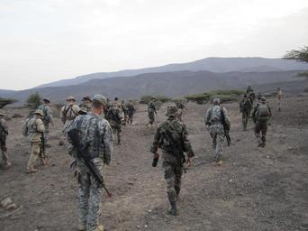 Keywords: French, Djiboutian, US service members survive the desert 110913-N-MJ000-262.jpg en More than 150 service members from the French Djiboutian and United States militaries walk across the Djibouti desert during a 5th French Marine Regiment-sponsored desert combat training course Sept 13 The service members navigated 50 miles of Djiboutian desert by foot during the 10-day course Forty members of the Combined Joint Task Force - Horn of Africa and Camp Lemonnier Djibouti participated in the training <br>Unit Combined Joint Task Force - Horn of Africa 2011-09-13 U S Navy photo by Lieutenant Mark Jackson https //www dvidshub net/image/471437/french-djiboutian-us-service-members-survive-desert 110913-N-MJ000-262 2011-10-10 09 33 CAMP LEMONNIER DJ PD-USGov-Military-Navy Combined Joint Task Force - Horn of Africa Camp Lemonnier Images from DoD uploaded by Fæ |
