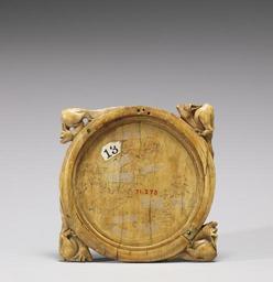 Keywords: French - Mirror Cover with Hawking Scene - Walters 71275 - Back.jpg On the back of this mirror cover a couple on horseback are shown hawking; this was a pastime suitable for noble young lovers as they could be together away from the castle or manor house for their amorous pursuits The scene is surrounded by a six-lobed frame set within a circle and four crouched dragons ca 1325 1350 Medieval ivory cm 12 12 1 1 accession number 71 275 14936 Walter Sneyd Staffordshire until 1888 Walter Sneyd Sale London July 7 1902 no 23 Jaques Seligmann Paris Henry Walters Baltimore by purchase Walters Art Museum Henry Walters Acquired by Henry Walters Medieval Games of Love and War The Walters Art Gallery Baltimore 1995-1996 Vive la France French Treasures from the Middle Ages to Monet The Walters Art Gallery Baltimore 1999-2000 place of origin Paris France Walters Art Museum license French carved ivory mirror cases in the Walters Art Museum 14th-century carved ivory mirror cases Falconry in medieval art Mirror Cover with Hawking Scene Media contributed by the Walters Art Museum needs category review Vive la France French Treasures from the Middle Ages to Monet |