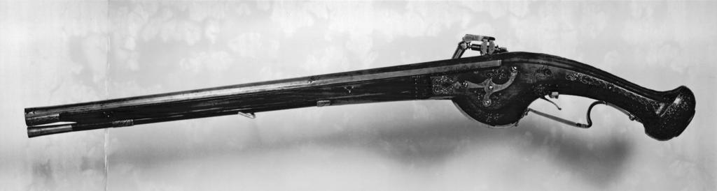| Keywords: French - Wheel-lock Pistol of Louis XIII of France - Walters 51435.jpg This pistol is one of a pair documented as having belonged to King Louis XIII of France 1601-1643 The artistry of the restrained decoration with the brass wire and silver foliage against the pear wood is exquisite between 1635 1640 Baroque steel pear wood brass wire and silver cm 71 accession number 51 435 19582 King Louis XIII from the royal gun room no 208 Clements date and mode of acquisition unknown Henry Griffith Keasbey New York date of acquisition unknown by purchase Sale American Art Association New York December 5 1924 no 138 Henry Walters city Baltimore Walters Art Museum Henry Walters Acquired by Henry Walters 1924 place of origin Lisieux France Walters Art Museum license Baroque art in the Walters Art Museum Weapons in the Walters Art Museum Art of France in the Walters Art Museum Wheellock pistols |