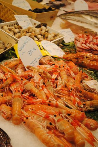 Keywords: fresh fish prawns market stall fish food fresh seafood shrimp raw market gourmet shellfish ice ingredient