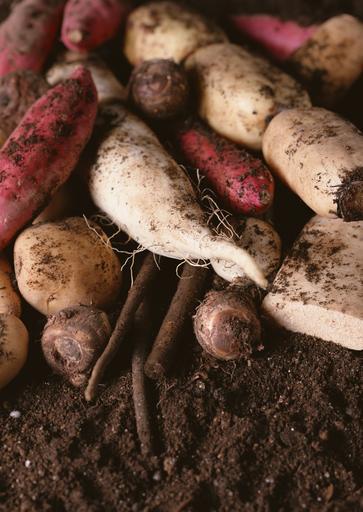 Fresh-radishes-potatoes-and-sweet-potatoes-on-soil.jpg (2094x2950)