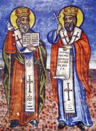 | Keywords: Freska na Sv. Kiril i Metodij od Sv. Jovan Slepčenski.jpg mk анасти Слепче ц ква Св Јован П етеча св Ки ил и св етодија http //www kalamus com mk/pdf_spisanija/patrimonium_4/24_1 20 20016_4 20Spisanie 202011 20Nikola pdf THE IMAGES OF THE HOLY SLAV TEACHERS ST CYRIL AND ST METHODIUS IN THE FRESCO PAINTING OF THE 19th CENTURY OF PELAGONIJA MARIOVO AND DEMIR HISAR Author 1889 PD-Macedonia Frescos of Saints Cyril and Methodius Frescos in St John the Baptist Church Slepče | ||||