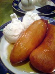 Keywords: Fried bananas.jpg Fried bananas with ice cream sv Fritterad banan med glass Stockholm Anette B 2007-12-07 Fried bananas Fritters Chinese cuisine in Sweden