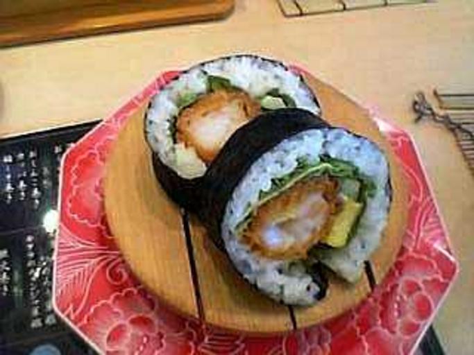 | Keywords: Fried-shrimp.jpg Sushi-roll with fried shrimp Own-work taken by cellular phone with camera on 14/July/2006 Sharpness-modification was done with MS-photoeditor 2006-07-14 own assumed Questionfromjapan~commonswiki Maki zushi Shrimp or prawn dishes of Japan |