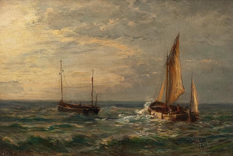 | Keywords: Friedrich Ernst Morgenstern - Zwei Fischkutter auf hoher See.jpg oil canvas cm 27 5 41 accession number object history credit line exhibition history F Ernst Morgenstern ~ lower right signature http //kunstauktionen-duesseldorf de/de/katalogdetails/11/288/2 Hargesheimer Günther Kunstauktionen Düsseldorf 12 SEPTEMBER 2009 lot 286 PD-old-auto-1923 1919 Friedrich Ernst Morgenstern Oil paintings of seascapes Paintings of boats Images from Hargesheimer Günther Kunstauktionen | ||||
