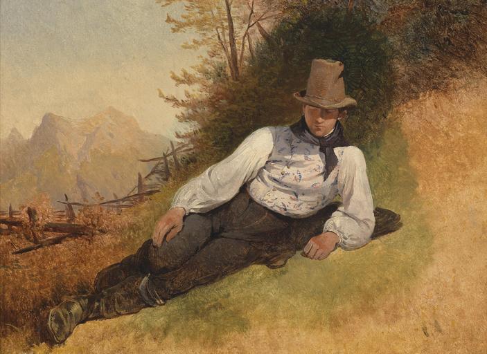 | Keywords: Friedrich Gauermann Bauernbursche 1830er.jpg Bauernbursche auf einer Wiese liegend oil paper canvas 20 9 x 27 cm http //www dorotheum com Dorotheum end other date s 1830 Creator Friedrich Gauermann PD-old-100 Images from Dorotheum Friedrich Gauermann 1830s paintings Paintings of recumbent men outdoors |