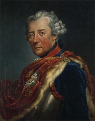Keywords: Friedrich II. (Therbusch).jpg Artwork artwork de Friedrich II c 1775 Oil on canvas cm 69 54 Château de Ferney-Voltaire Friederisiko Friedrich der Große Die Ausstellung ed Generaldirektion der Stiftung Preußische Schlösser und Gärten Berlin-Brandenburg Munich Hirmer 2012 p 209 other versions PD-old-100 Anna Dorothea Therbusch Château de Ferney-Voltaire Friedrich II of Prussia in portraits 1775 oil on canvas paintings in France Portrait 1775 portrait paintings Male 18th-century oil portraits of men at half length wearing cuirass 1775c Ermine clothing in art Powdered wigs in art 1775c Star of the Order of the Black Eagle in portrait paintings 1775c Three-quarter view portrait paintings of men facing left Velvet clothing in art |